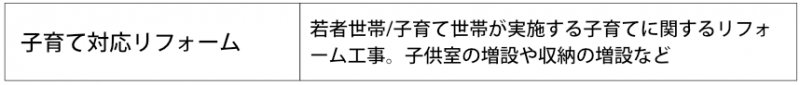 ▲子育て対応リフォームの具体的な対象工事