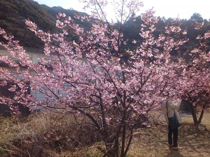 大分県津久見市の四浦半島でもあちらこちらに河津桜が植樹され、