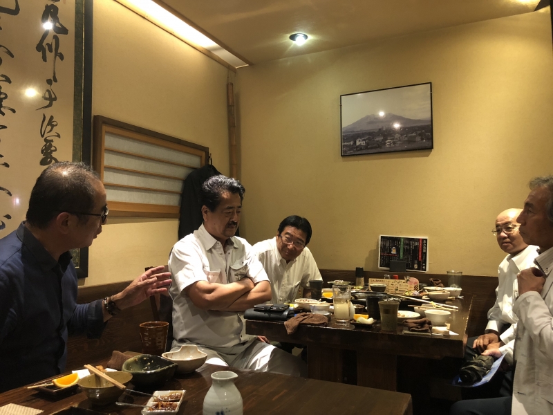 おつかれさんの懇親会は、鹿児島中央駅横の黒豚の専門店「八幡」です。