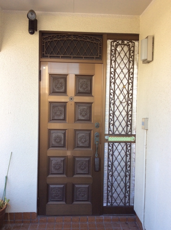 ▲古いデザインのドアを、木目調プリントで洋風のデザインのドアに交換。西日があたるので、断熱仕様のドアになりました。