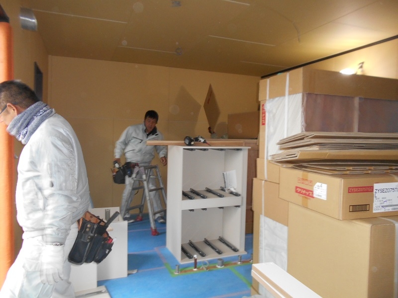 ▼システムキッチンとシステム収納の組み立てです。