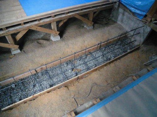 ▲床下に、新たな鉄筋コンクリートの基礎を作ったところです。