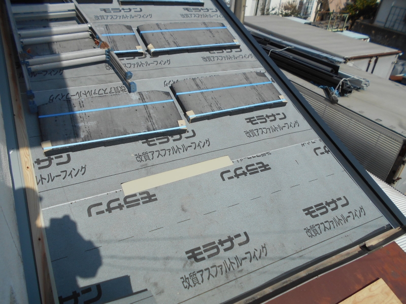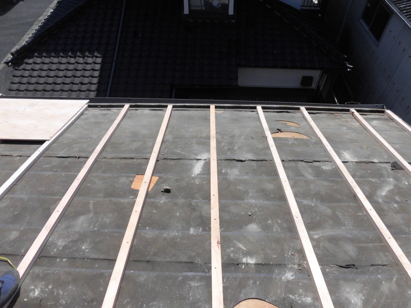 ▼古いルーフィングの上に新しく垂木を通して・・・