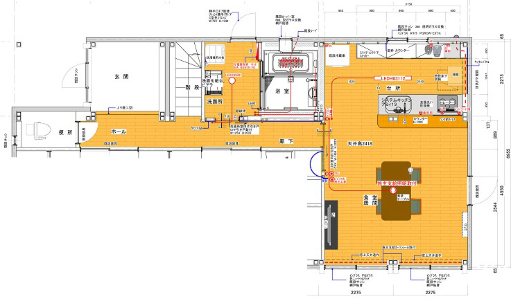 メインはキッチンでしたが、玄関ホールから、浴室、沿面、LDKまで、インテリアを統一させる