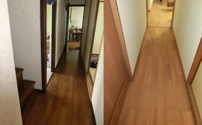 ▼廊下の前後写真です。内装の色で、こんなに印象が変わります。